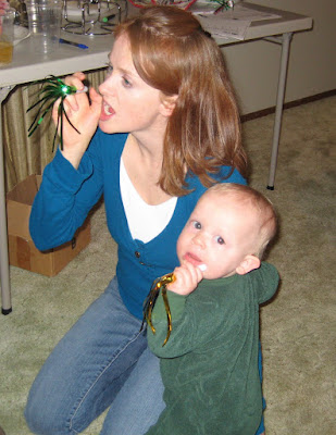 grapes in the photos are from a Spanish tradition I read about. I read to freeze them and eat them as quickly as possible at midnight, and each one represents a month in the New Year. The sweet ones represented months of good luck, the sour the opposite. Since the Barneys live so close, we put our kids to bed and transported them sleeping, but Claire didn't fall asleep. She was up with the other babies and went to bed about 10 p.m. I bought poppers to do at midnight and told Carter he could do some. At midnight, I didn't have the heart to wake him up, AND I forgot to save him any! It was so sad when he woke up on the way home. I had to go to three stores on New Year's Day to find more and paid way too much for the jumbo pack but we still have some at home for special occasions:)